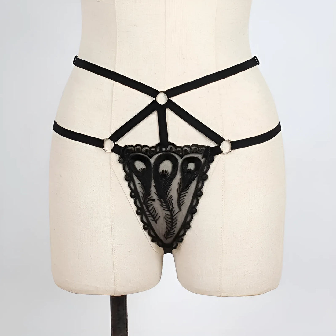 Majtki koronkowe stringi z ozdobnymi paskami