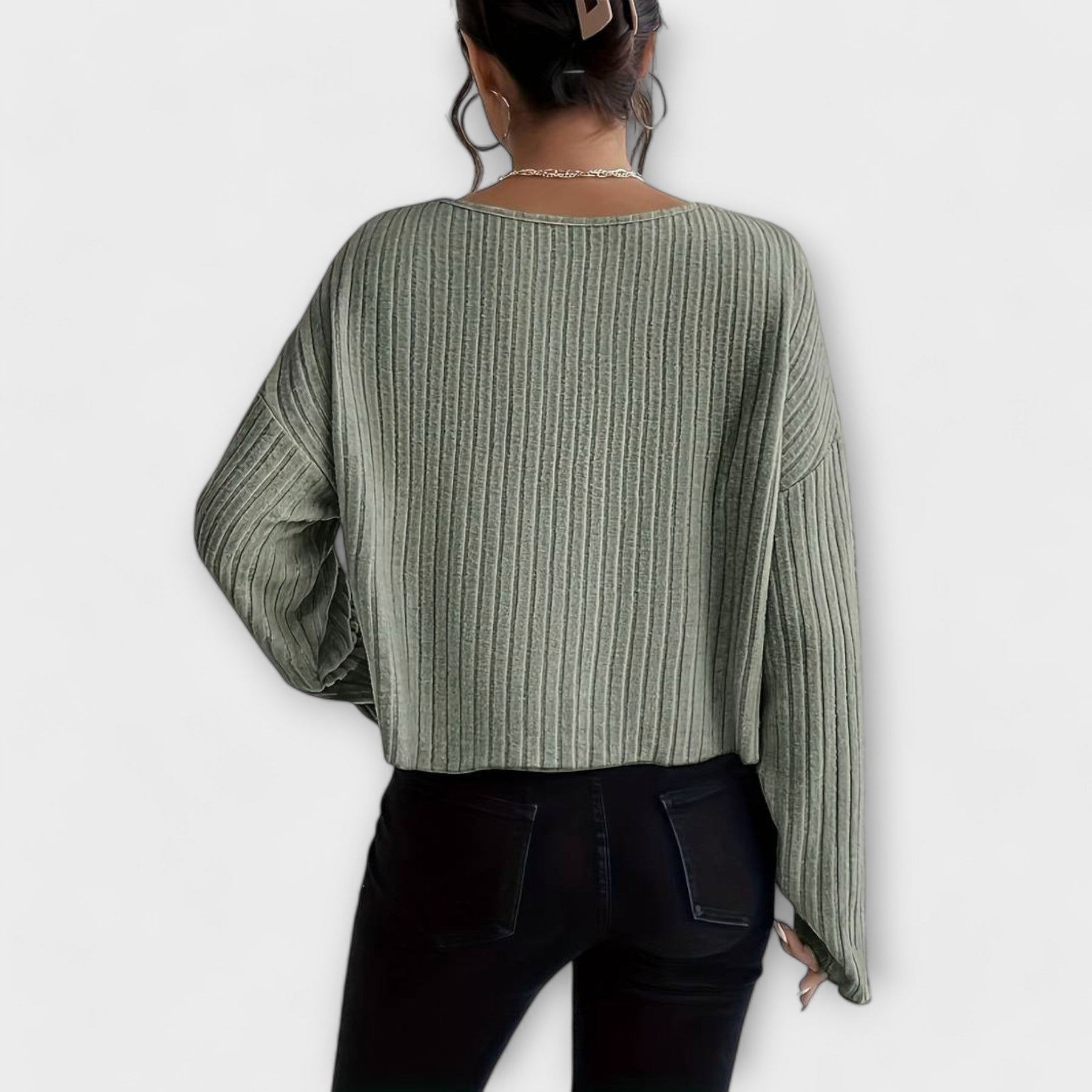 - Ponadczasowy design: Okrągły dekolt i prążkowana struktura tworzą sofistykowaną i uniwersalną stylizację.